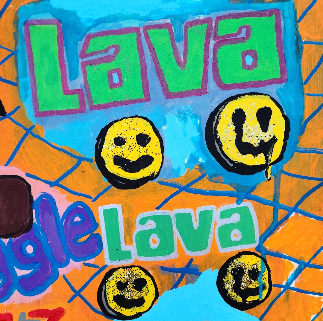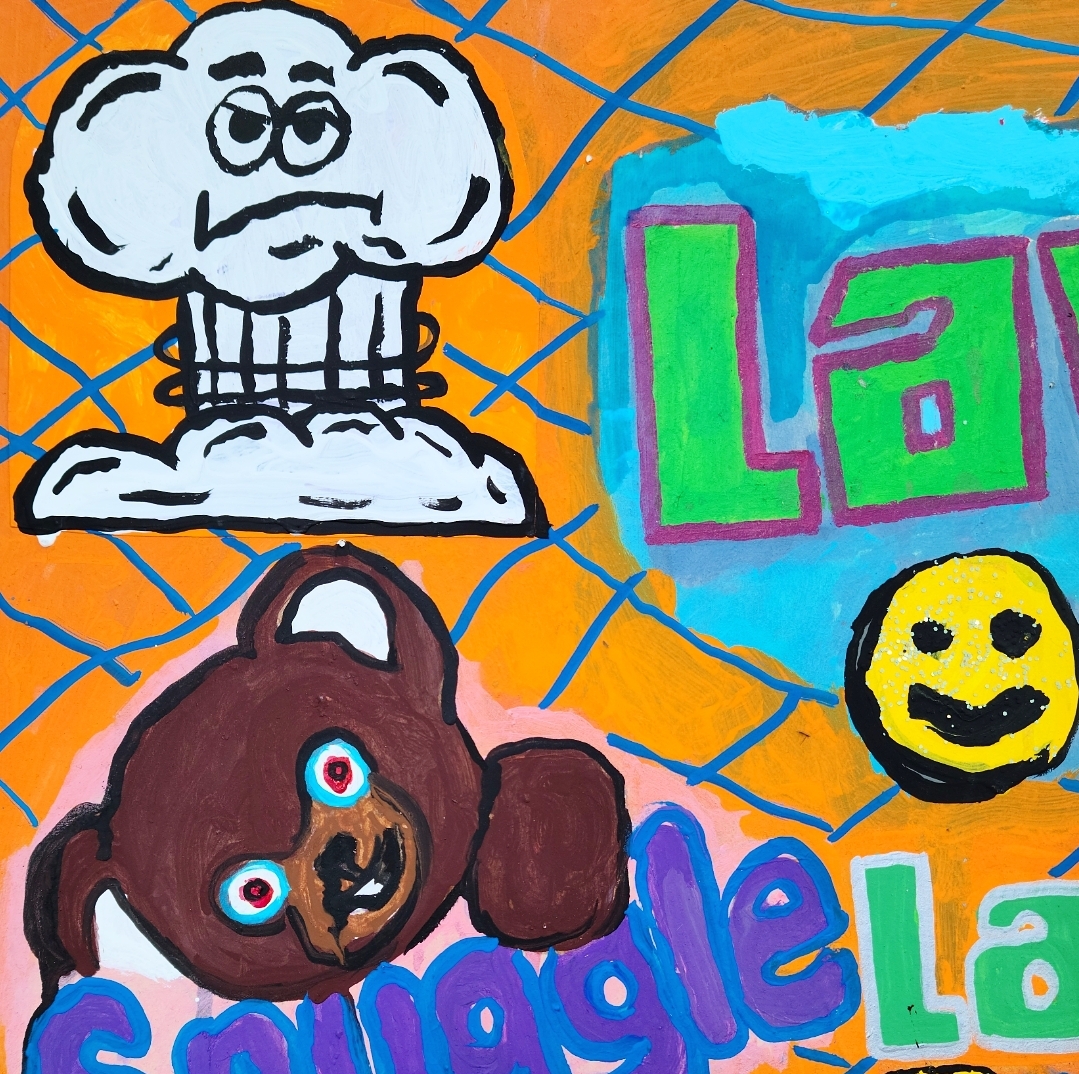 .acrylic paint, enamel paint, glitter, paint marker, collage on cardboard .18"x24" .2013-2017