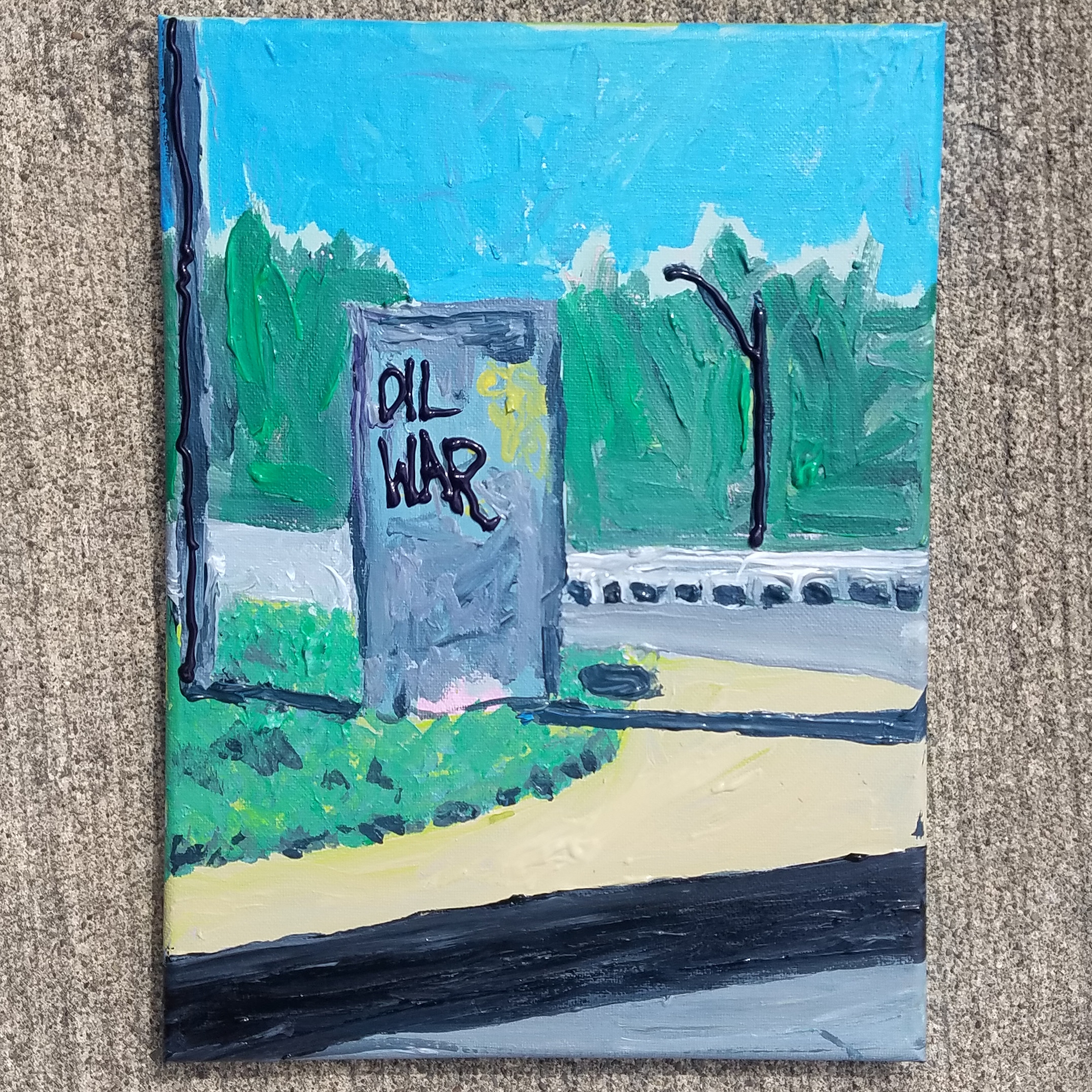 .acrylic paint, latex paint, puff paint on canvas .9"x12" .2019