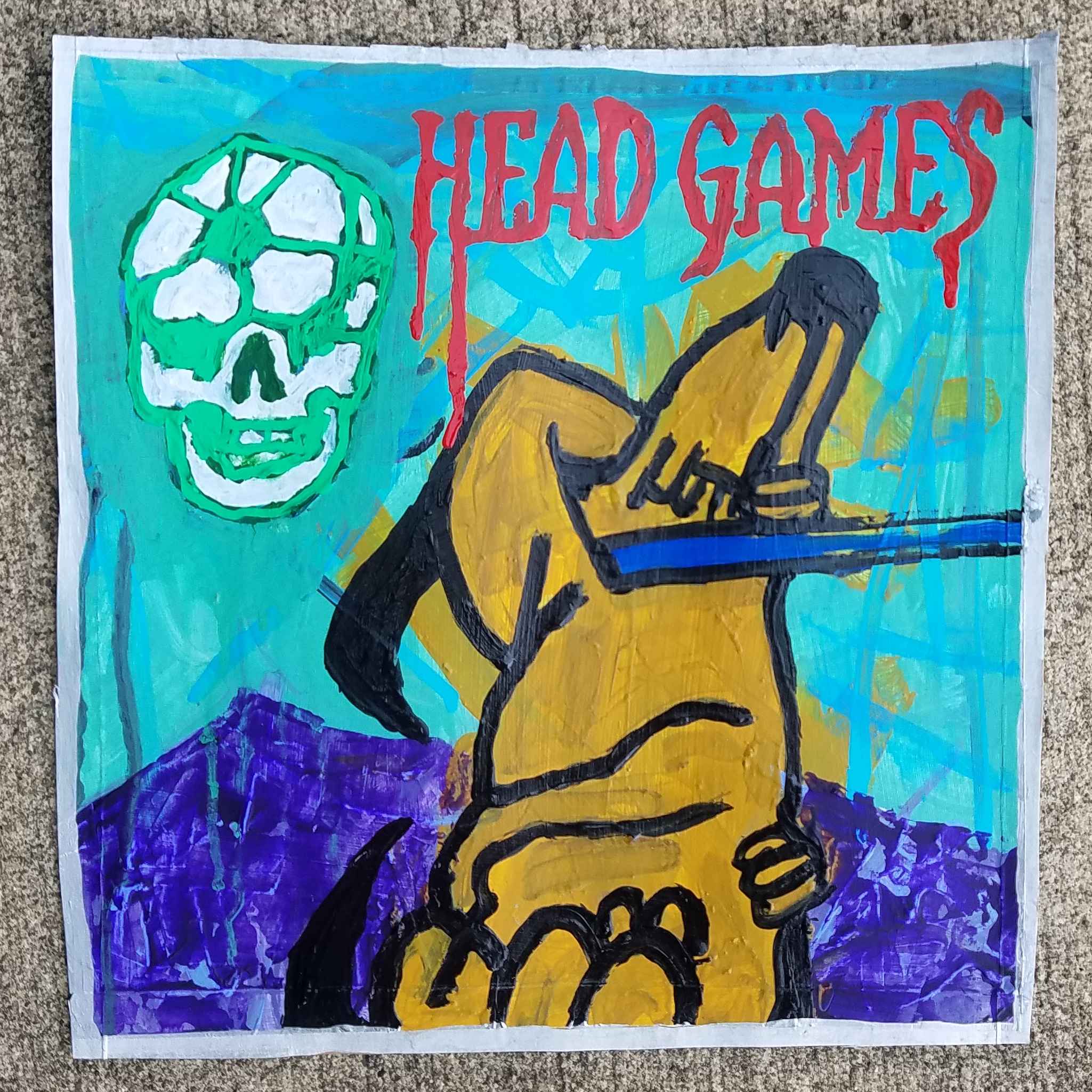 .acrylic paint, enamel paint, paint marker, gel medium on cardboard (digiorno's box) .13"x13" .2019