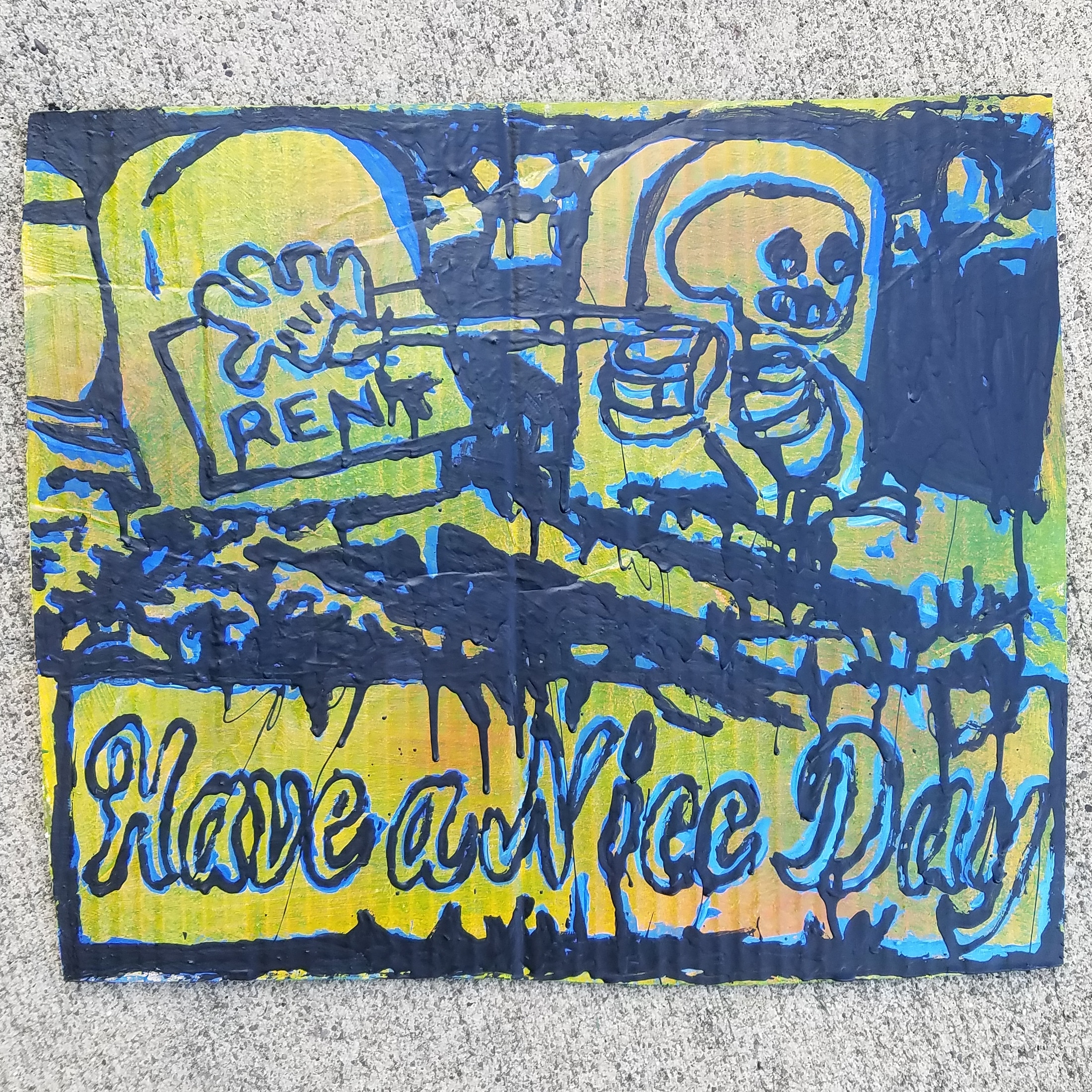 .acrylic, enamel, spraypaint on cardboard .14"x17" .2019