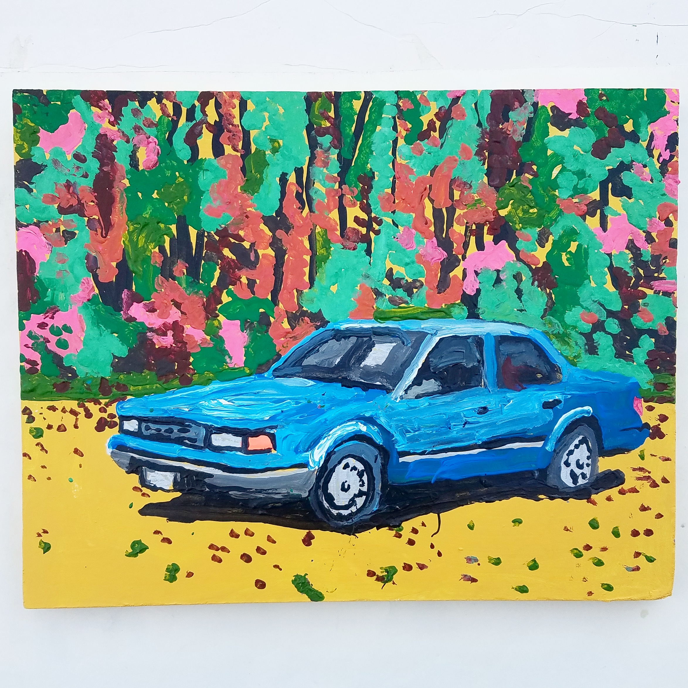 .acrylic,enamel,housepaint, speedball printing ink on cradled masonite panel .approximately 12"x16" 2019