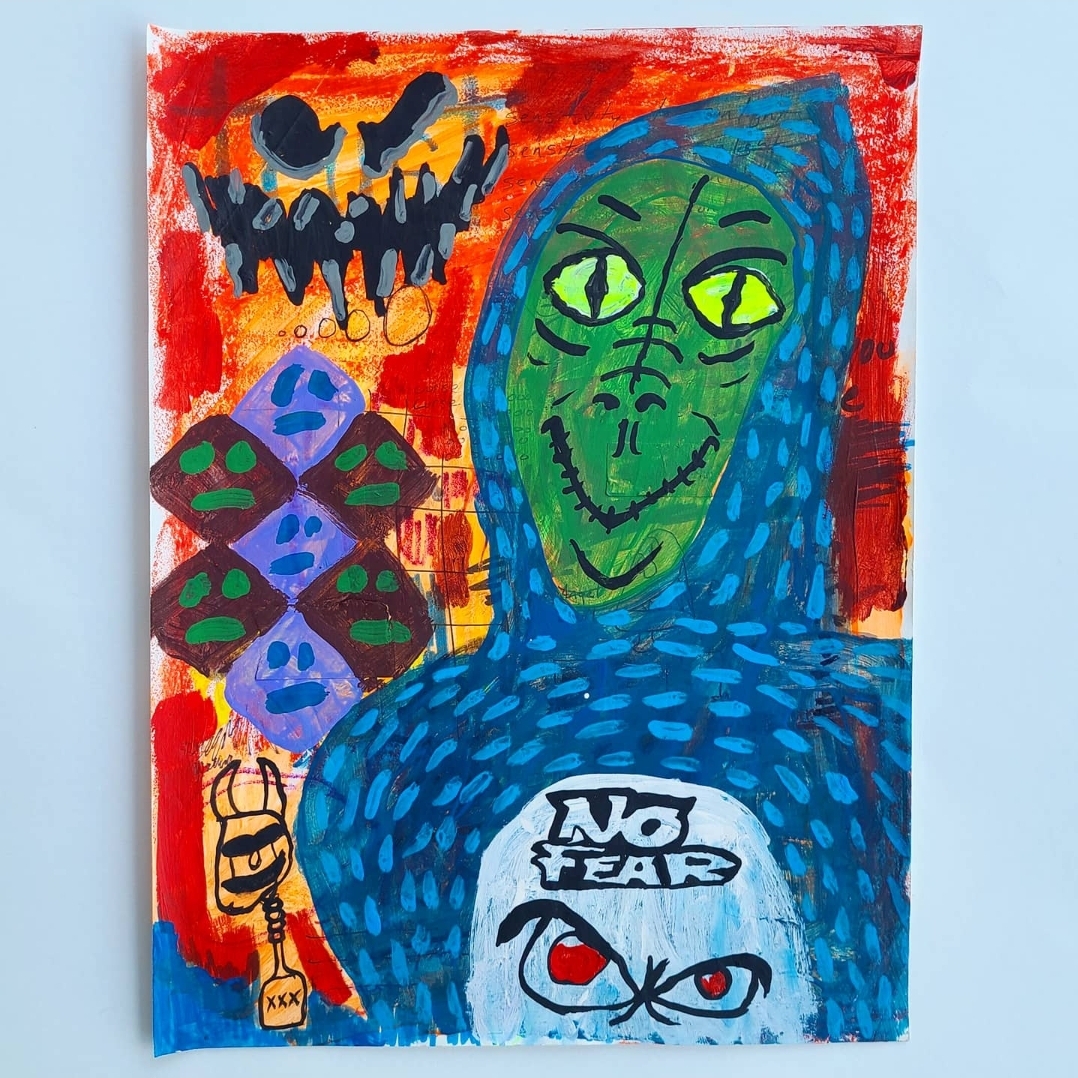 .acrylic, gouache, oil pastel,sharpie, ballpoint pen on paper .9"x12" .2018