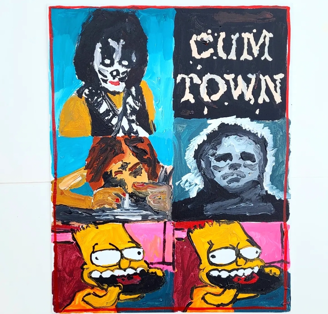 . Acrylic, acrylagouache, sharpie, krink markers, house paint on canvas panel .14"x18" .2022