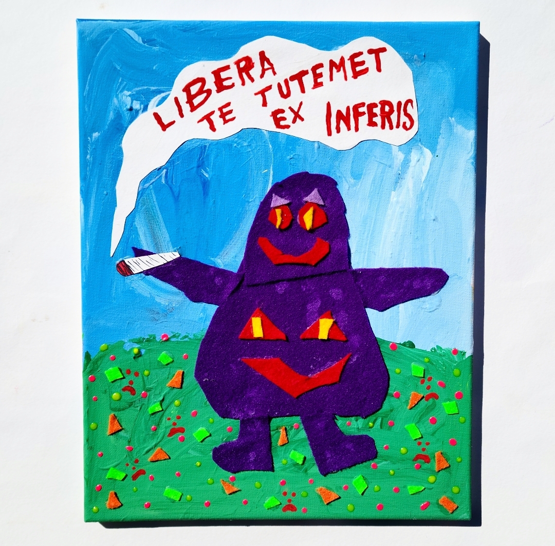 .acrylic, felt, puff paint, paper collage, sharpie on canvas .11"X14" .2023