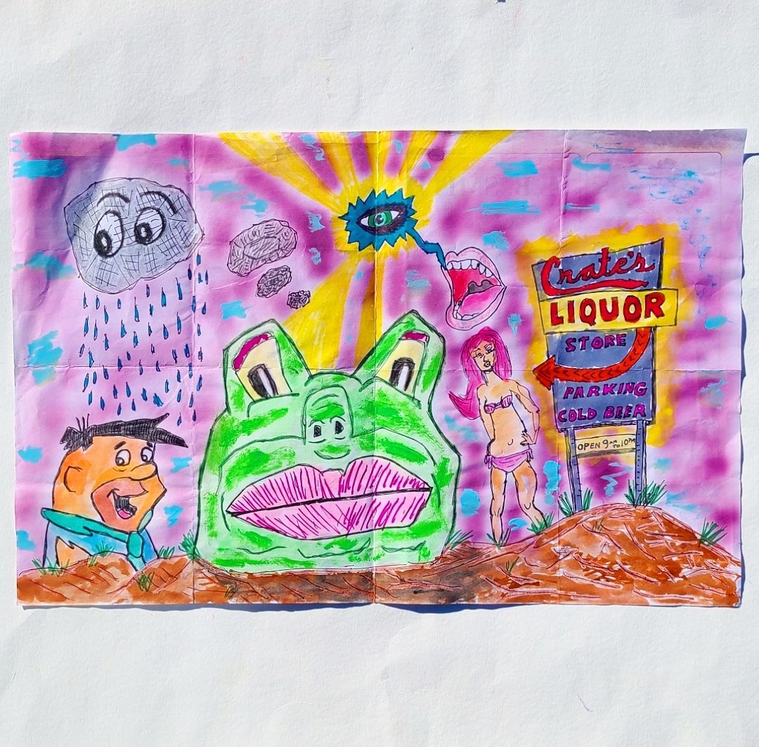 .sharpie, colored pencil, gouache, airbrush on paper diner placemat .12"x18" .2016-2018