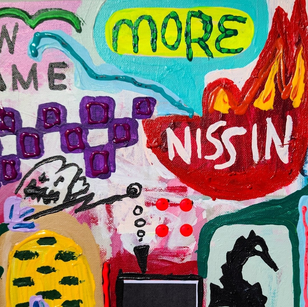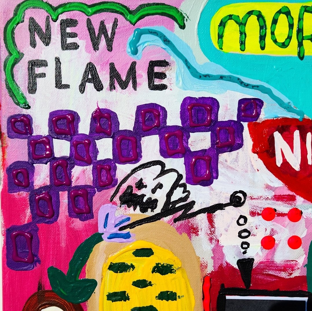 .acrylic, enamel, puff paint, collage on canvas .12"x16" .2023 .based on drawing from 2018