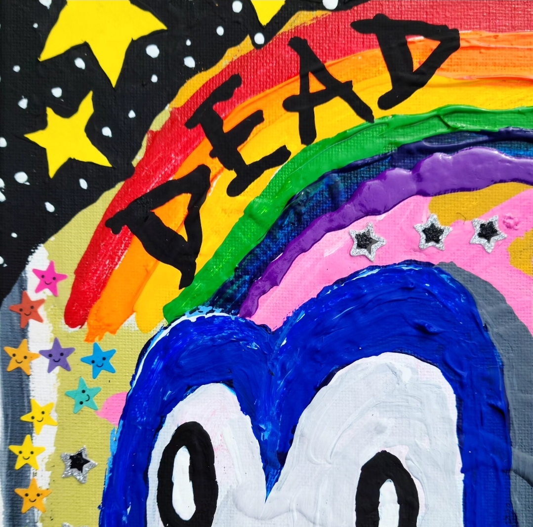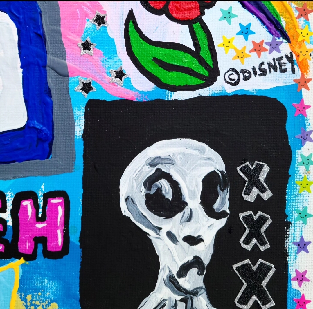 .acrylic, puff paint, collage on canvas .11"X14" .2024