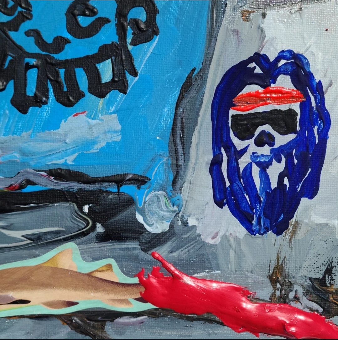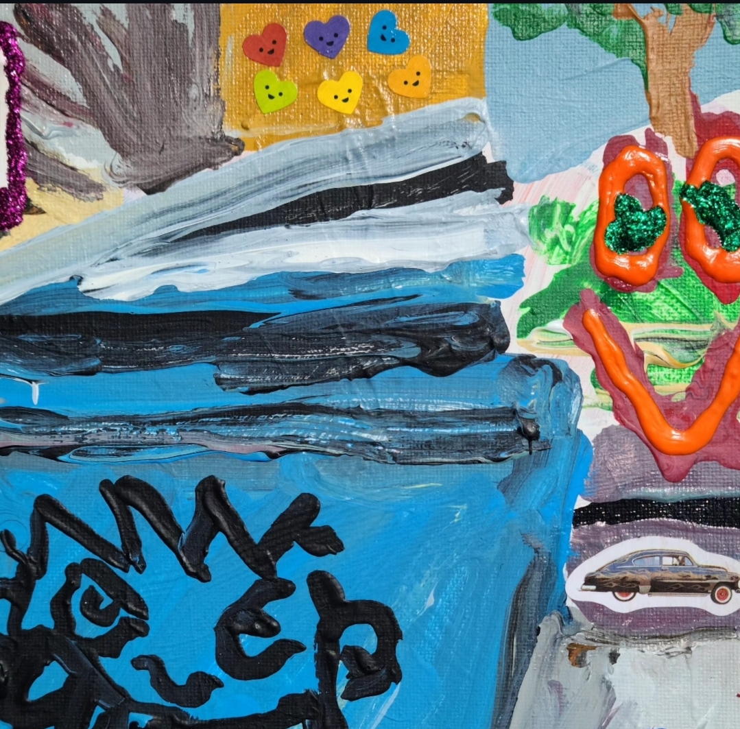 . Acrylic, collage, puff paint, glitter on canvas .9"x12" .2025
