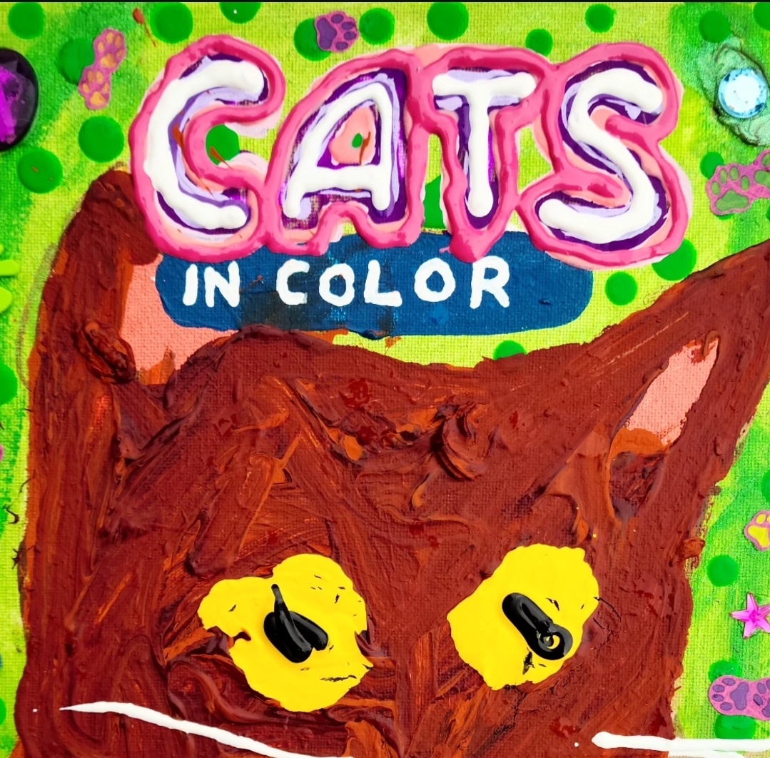 .acrylic, puff paint, glitter, fake jewels, stickers on canvas .9"x12" .2025