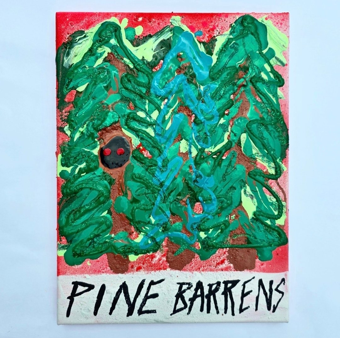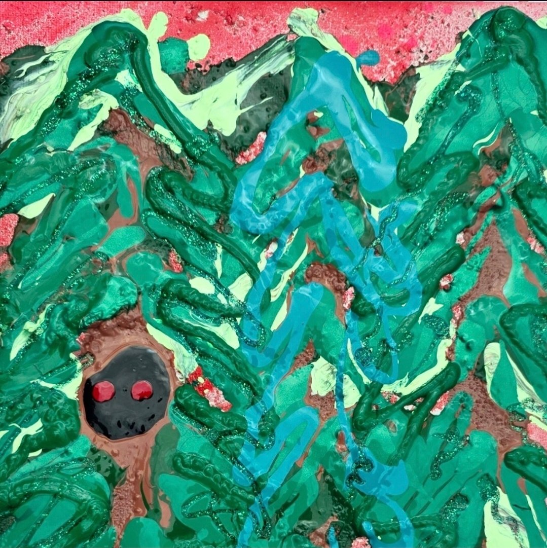 .acrylic, puff paint, glitter glue, spray paint, sand on canvas .9"x12" .2025